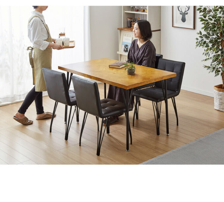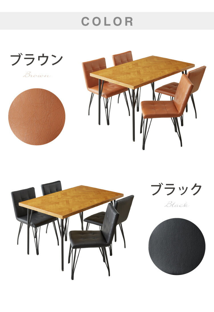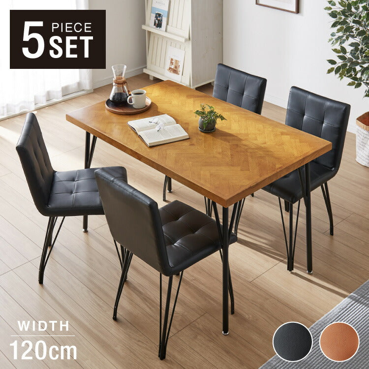ダイニングセット 5点 4人用 幅120 ラバーウッド 無垢材 ヘリンボーン調 テーブル ブラック ブラウン 西海岸 木製 コンパクト 長方形 おしゃれ 天然目 モダン ナチュラル おしゃれ(代引不可)