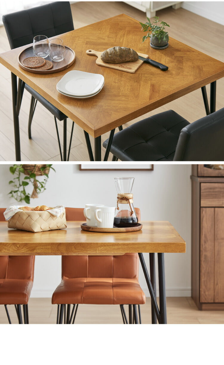 ダイニングテーブル 75 単品 幅75 ヘリンボーン調 ラバーウッド無垢材 天然目 テーブル 西海岸 木製 コンパクト 正方形 食卓テーブル おしゃれ モダン(代引不可)