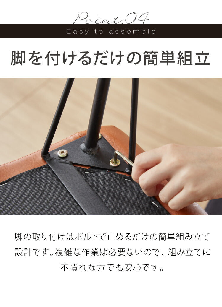 スッキリとしたスチール製の脚と光沢のあるダイニングチェアです。