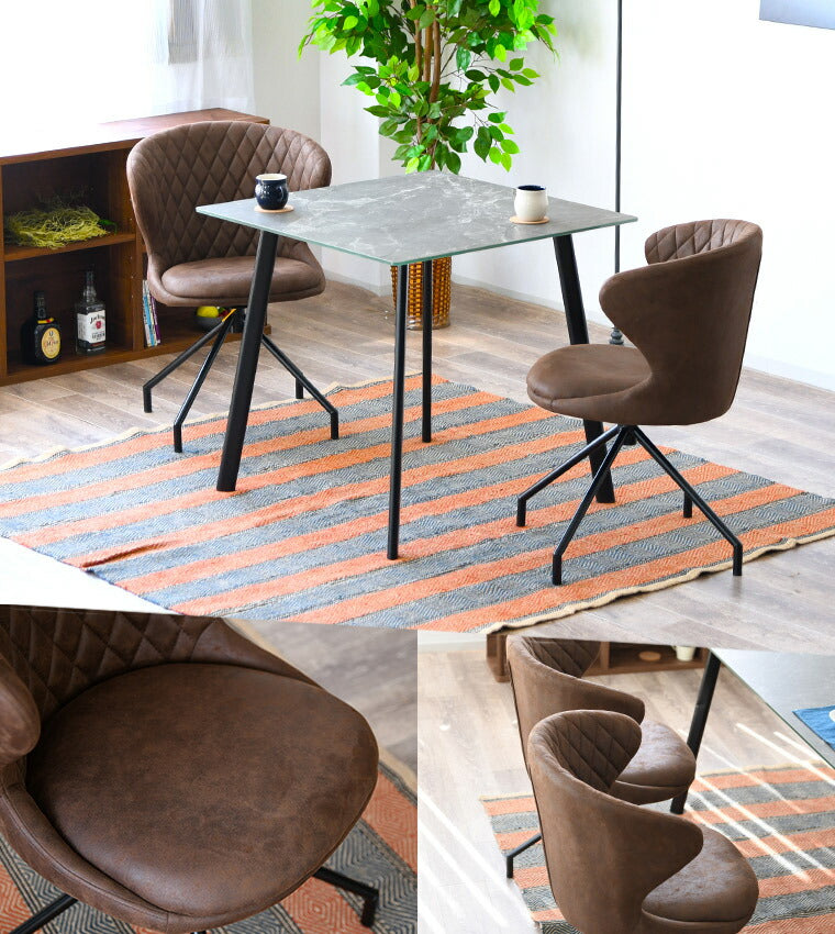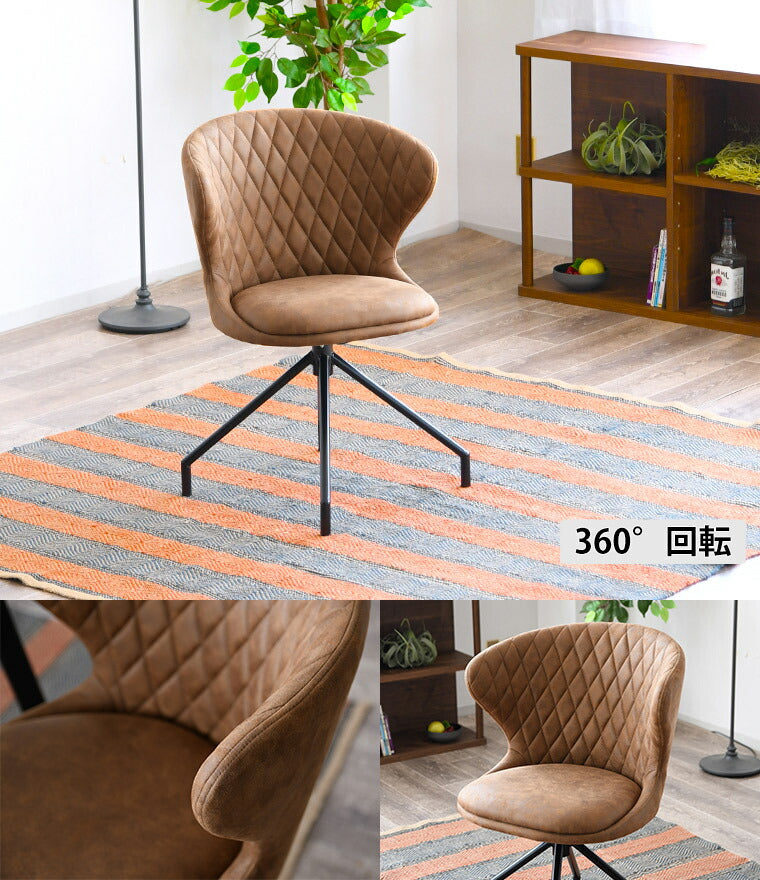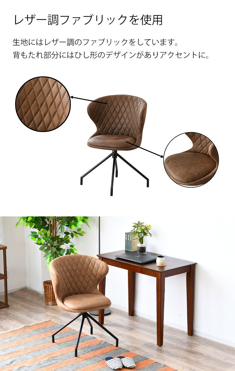 ダインングチェア 回転チェア 360°回転 1脚単品 デスクチェア レザーファブリック ブラウン おしゃれ アームレスト 回転いす 椅子 イス(代引不可)