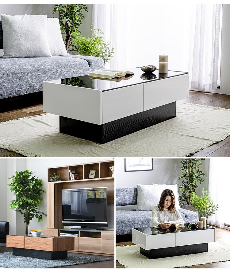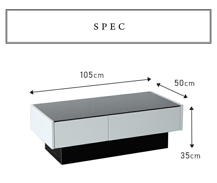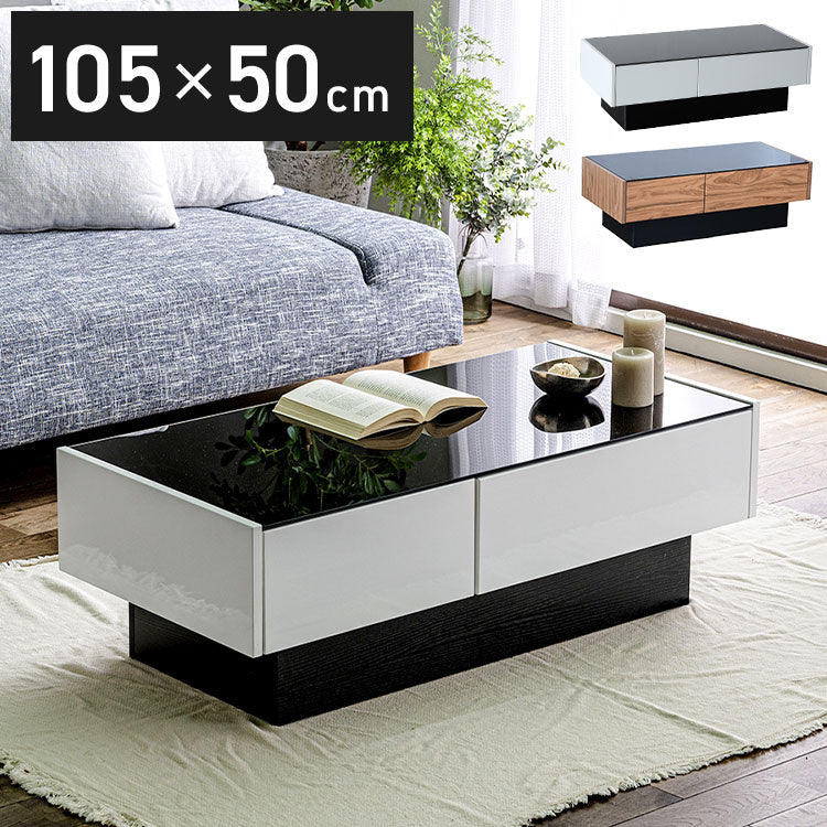 センターテーブル ガラス ローテーブル おしゃれ モダン 高級感 幅105 奥行50 高さ35 完成品 鏡面 引き出し 引出 収納 ナチュラル ホワイト 長方形 テーブル ガラステーブル リビングテーブル 新生活 (代引不可)