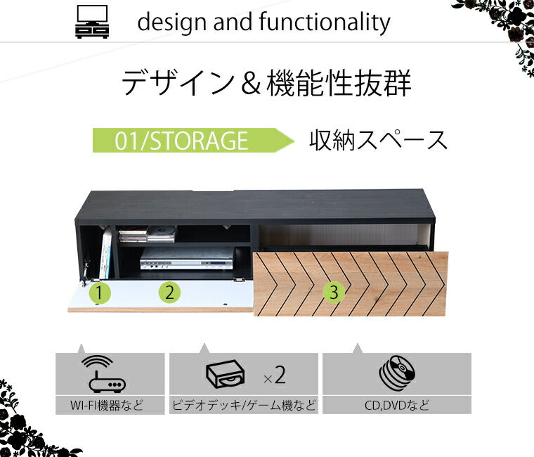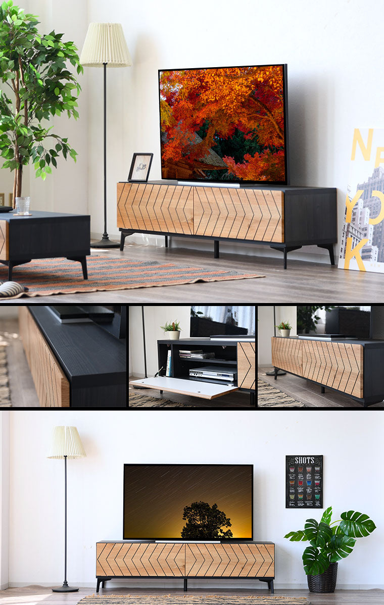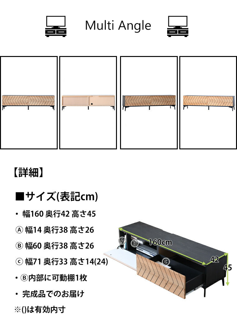 テレビ台 幅160 脚付き 完成品 国産 おしゃれ ヘリンボーン調 収納 リビング 大容量 ローボード TV台 TVラック ナチュラル(代引不可)