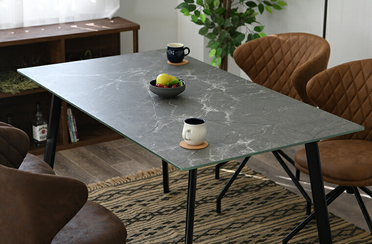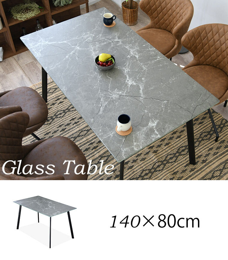 ダイニングテーブル ガラステーブル 幅140cm 単品 石目調 2人用 おしゃれ 強化ガラス ダイニング スチール モダン 食卓テーブル(代引不可)