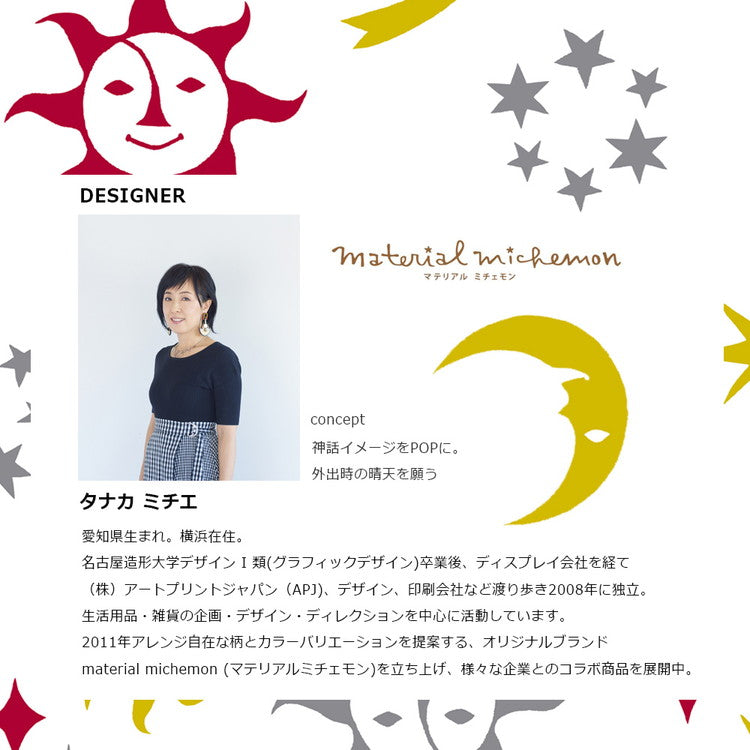 ●日本人デザイナー【タナカ ミチエ】のオリジナルデザイン。アウトドアでの晴天を願い、神話をPOPにしたデザインです。
