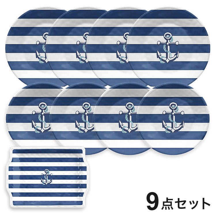 ノーティカルアンカー 9点セット メラミン食器 割れにくい おしゃれ 食洗機対応 ボウル お皿 可愛い 電子レンジ不可 食洗機対応 食器セット プレート(代引不可)