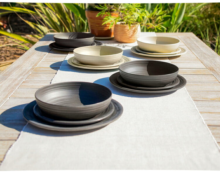 マットな質感と手作りの風合いを模したシックなメラミン食器です