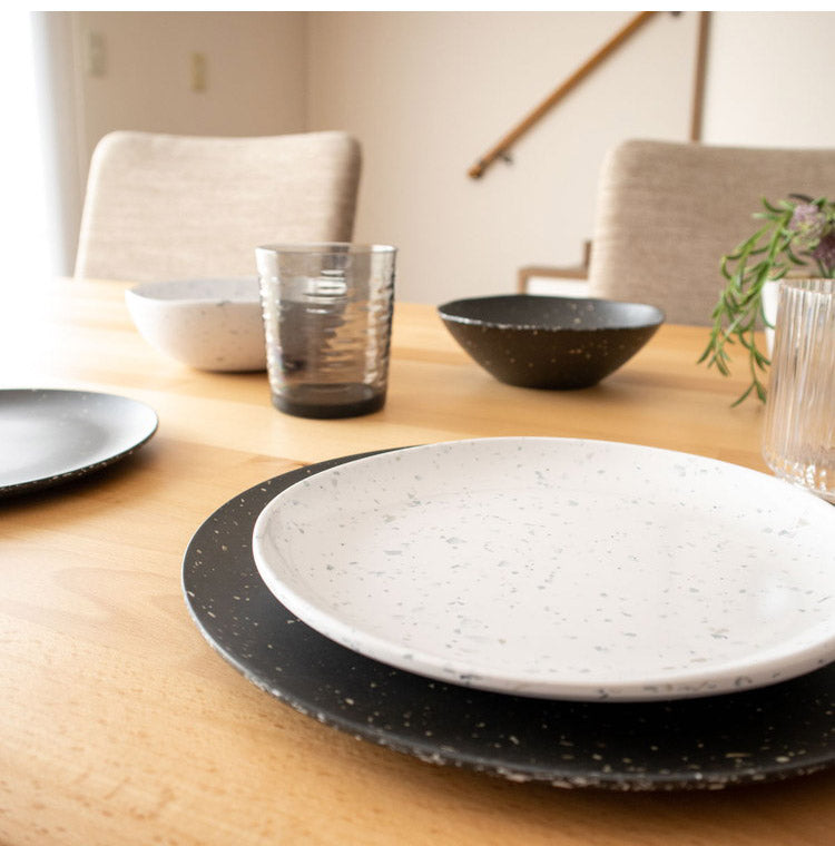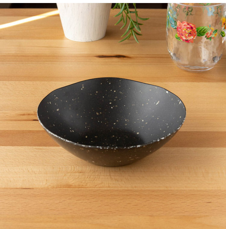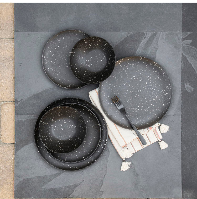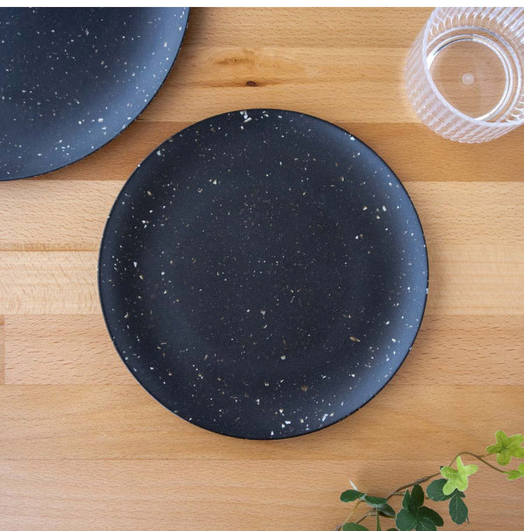 マットな質感の中に星座のような斑点が散りばめられたシックな風合いのメラミン食器です