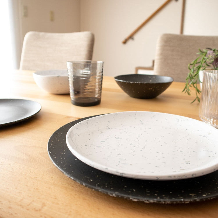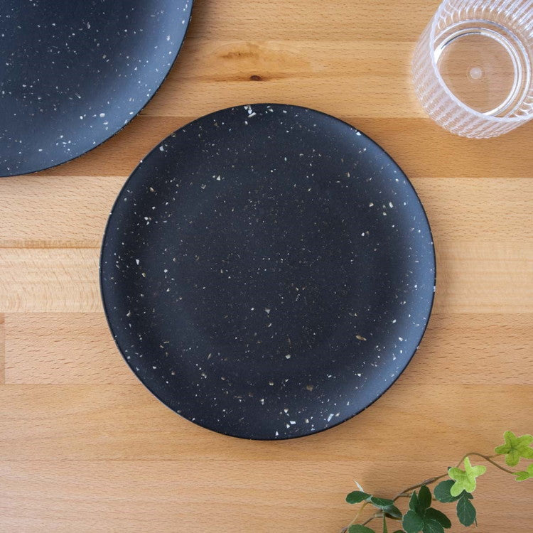 マットな質感の中に星座のような斑点が散りばめられたシックな風合いのメラミン食器です