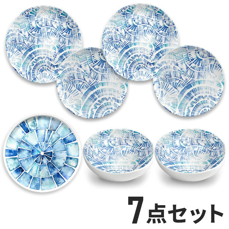 コースタルスカロップ 7点セット メラミン食器 割れにくい おしゃれ 食洗機対応 ボウル お皿 深皿 可愛い 電子レンジ不可 食洗機対応 食器セット プレート(代引不可)