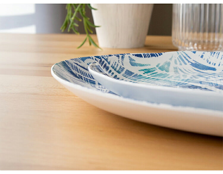 爽やかなブルーとホタテの柄をモチーフにしたメラミン食器です