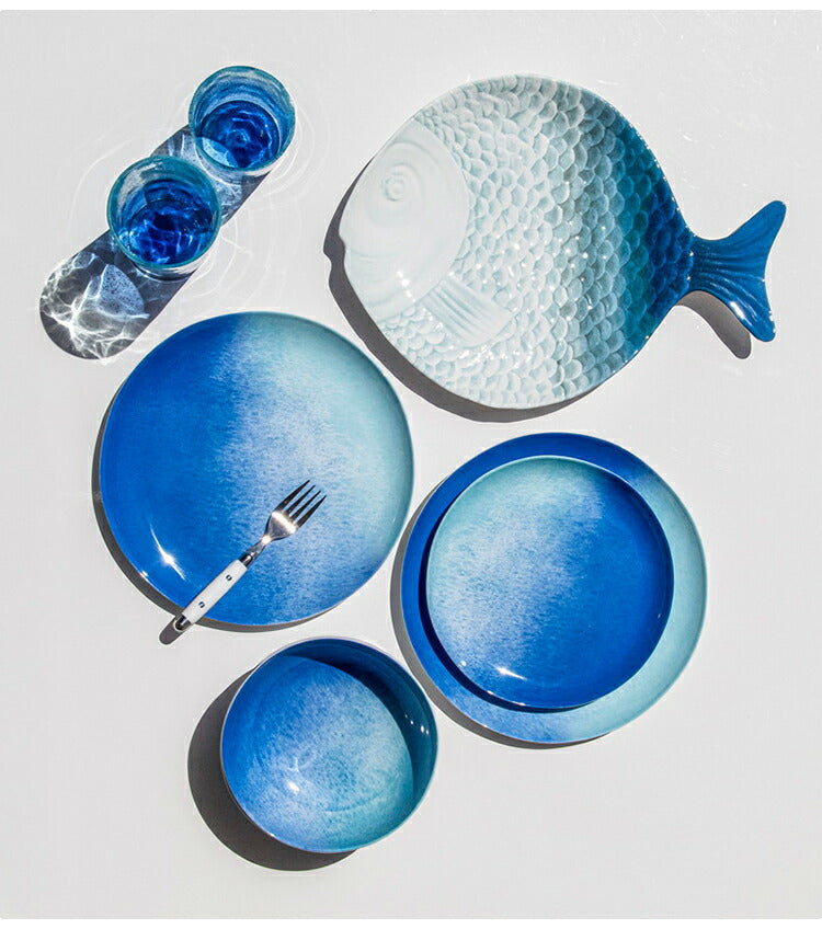 海のイメージと爽やかな青のグラデーションが美しいメラミン食器です