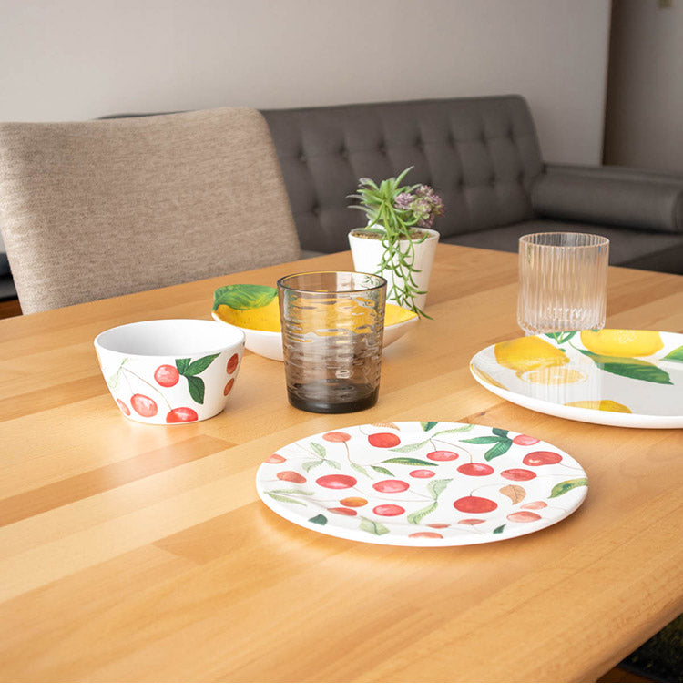 ホワイトベースにベリー柄がかわいい印象のメラミン食器です。食事とのコーディネイトも合わせやすく、気持ちが明るく毎日の食卓が華やかになります