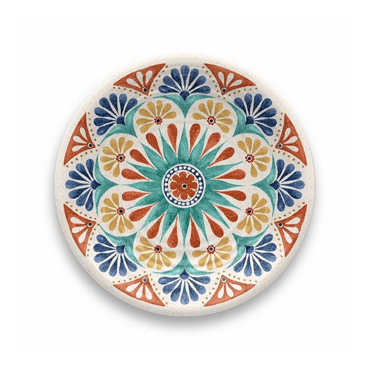 ハンドメイド風で南欧デザインが特徴のメラミン食器です。自然のモチーフをパッチワークのように組み合わせたユーモラスなデザインです