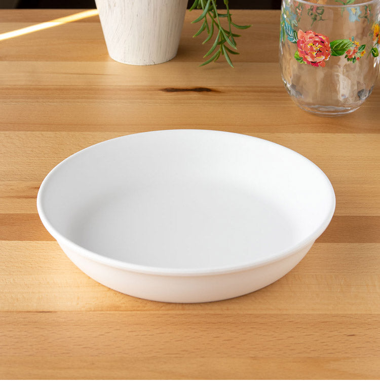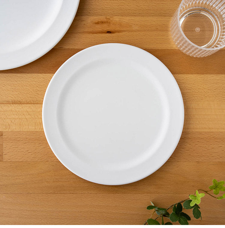 ピュアホワイト、ベーシックで毎日使用しても飽きのこないデザインが特徴のメラミン食器です