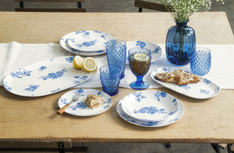 ホワイトベースにブルーのプラントデザインが特徴のメラミン食器です。青磁をイメージしたヨーロッパスタンダードデザインです