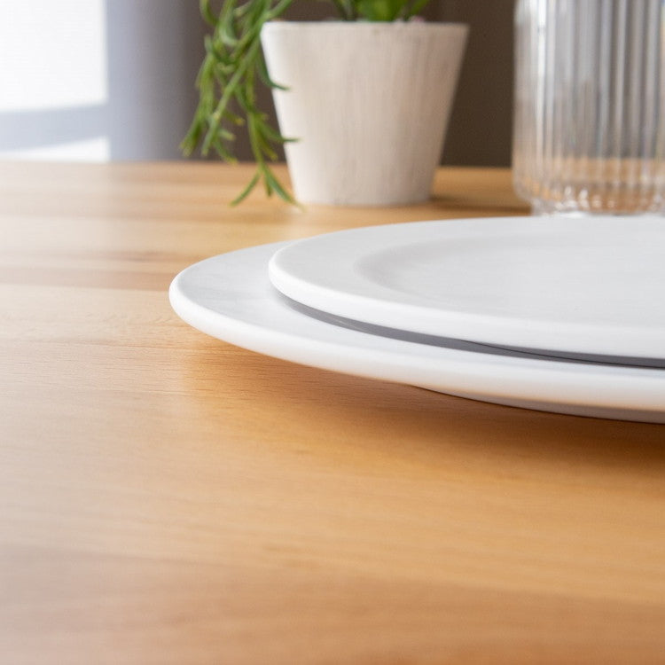 ピュアホワイト、ベーシックで毎日使用しても飽きのこないデザインが特徴のメラミン食器です