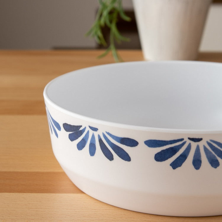 ホワイトベースにブルーのプラントデザインが特徴のメラミン食器です。青磁をイメージしたヨーロッパスタンダードデザインです