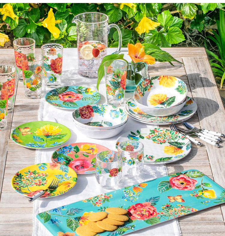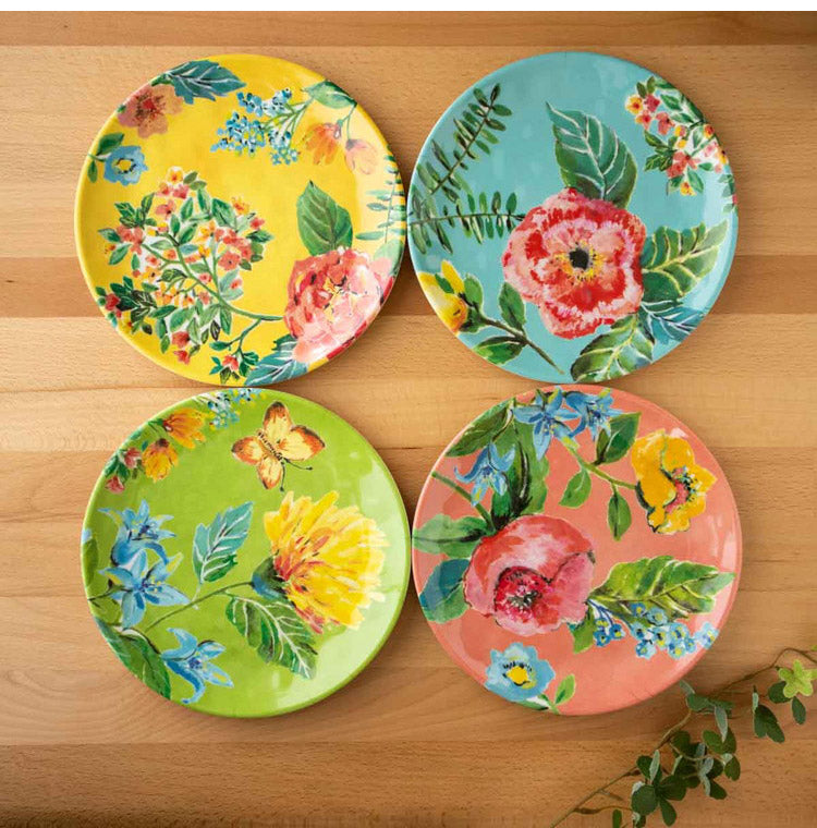 庭園に咲くフローラルをデザインモチーフとした質感のあるメラミン食器です