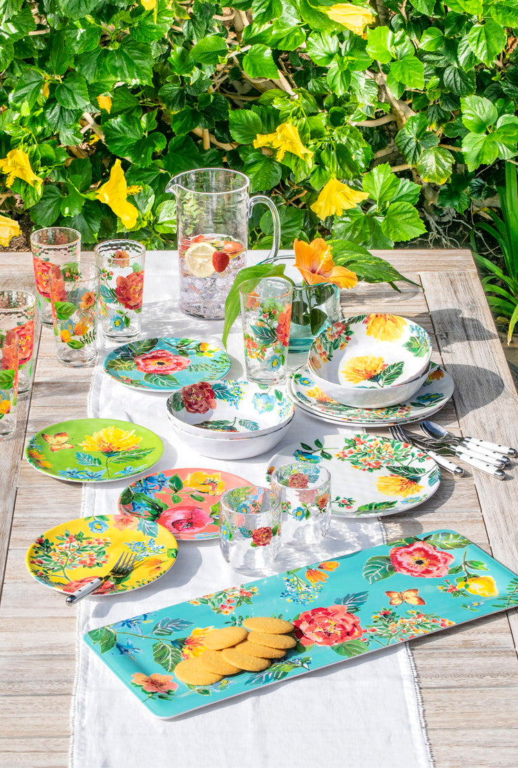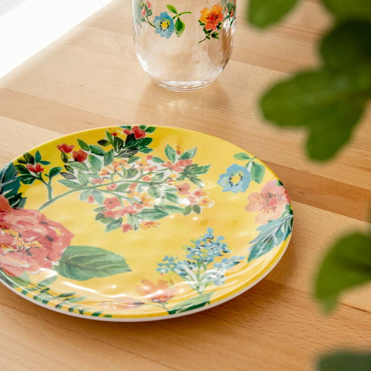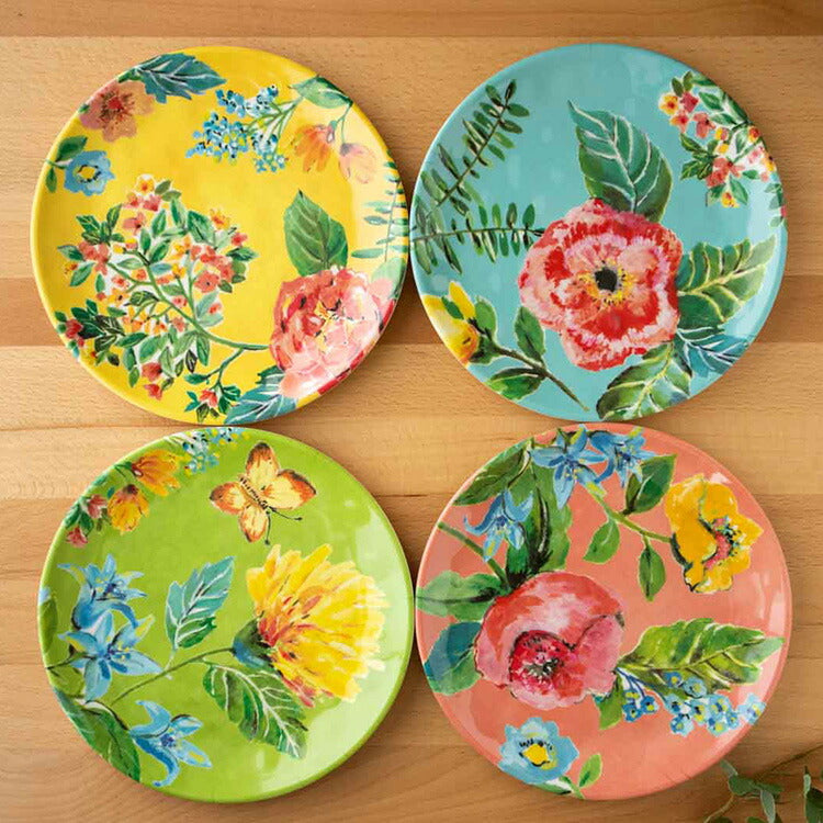 庭園に咲くフローラルをデザインモチーフとした質感のあるメラミン製4枚セット食器です