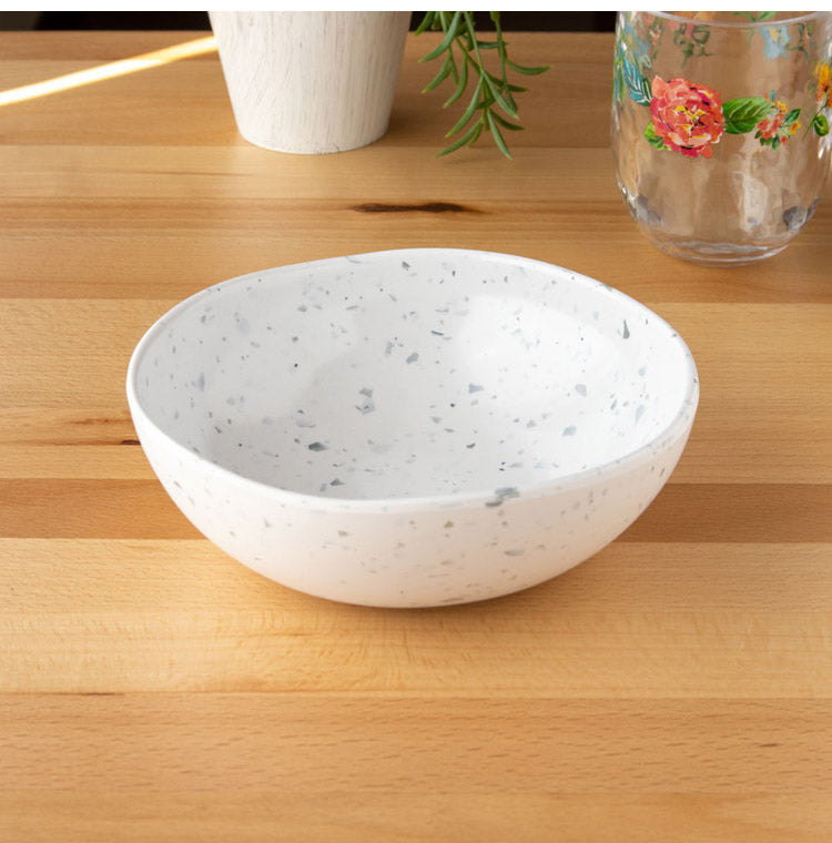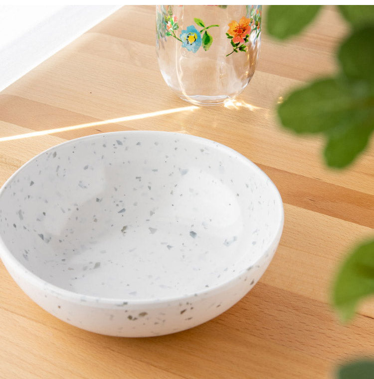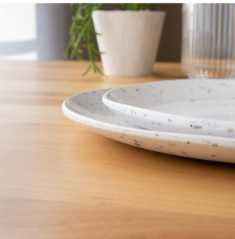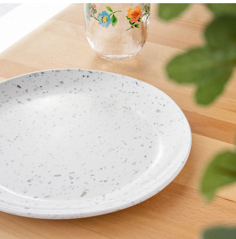 自然な斑点が有る磁器の風合いを模したシックなメラミン食器です