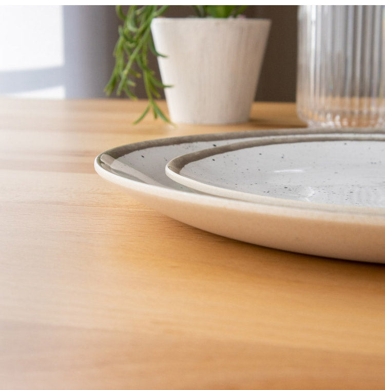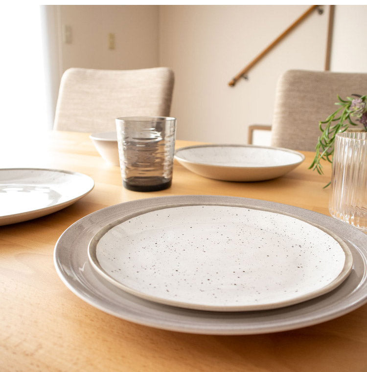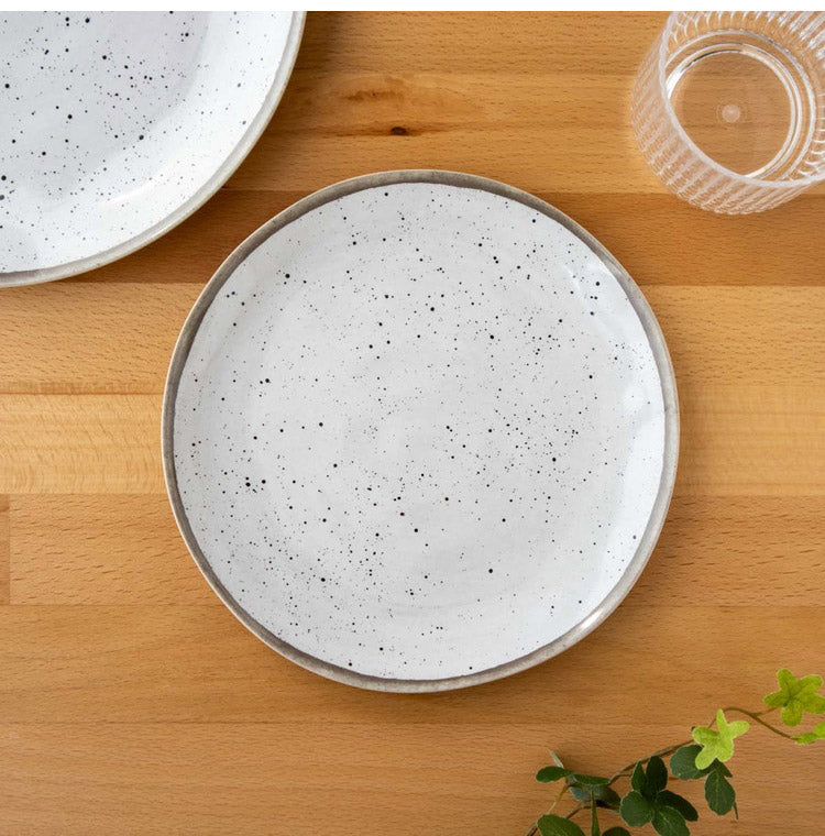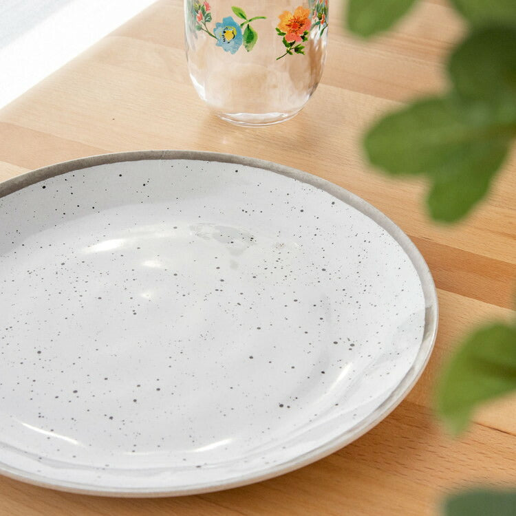 自然な斑点が有る磁器の風合いを模したシックなメラミン食器です