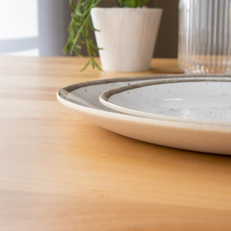 自然な斑点が有る磁器の風合いを模したシックなメラミン食器です
