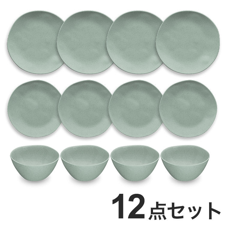 麦わらPP オーガニック 12点セット セージグリーン ディナープレート サラダプレート ボウル ポリプロピレン製 ターホン TarHong 割れにくい食器 おしゃれ 電子レンジ対応 食洗機対応 プレート(代引不可)