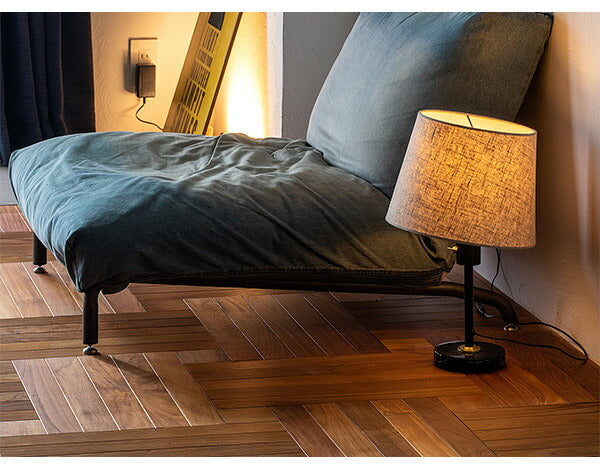 スイッチを入れるとファブリックシェードが光を柔らかく拡散。