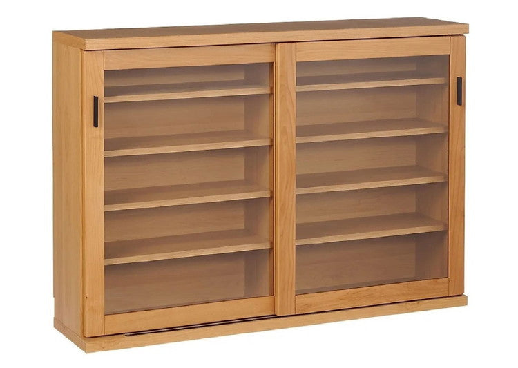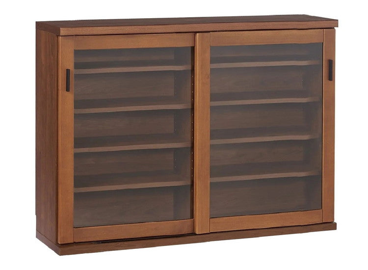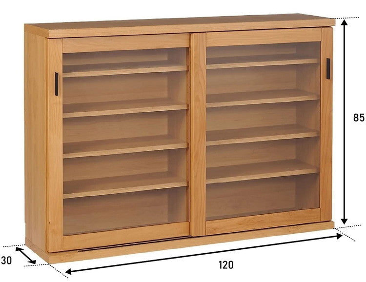 シェルフ ラック スリム 完成品 国産 幅120 奥行30 高さ85 カウンター下収納 アルダー無垢材 天然木 木製 北欧 ガラス 引き戸 省スペース ナチュラル ブラウン(代引不可)