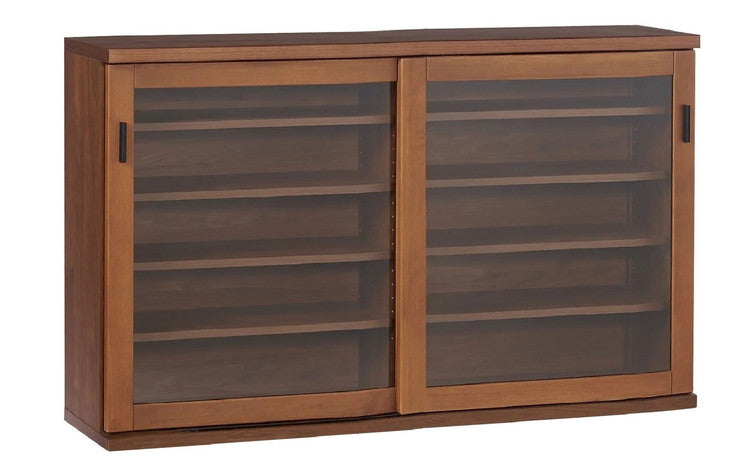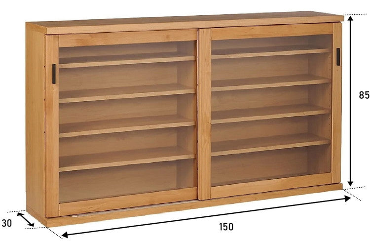 シェルフ ラック スリム 完成品 国産 幅150 奥行30 高さ85 カウンター下収納 アルダー無垢材 天然木 木製 北欧 ガラス 引き戸 省スペース ナチュラル ブラウン(代引不可)