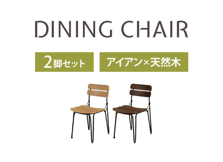 ダイニングチェア 背もたれ付き 木製 2脚組 座面高43cm アイアン 天然木 ナチュラル ブラウン リビング ダイニング おしゃれ 椅子(代引不可)