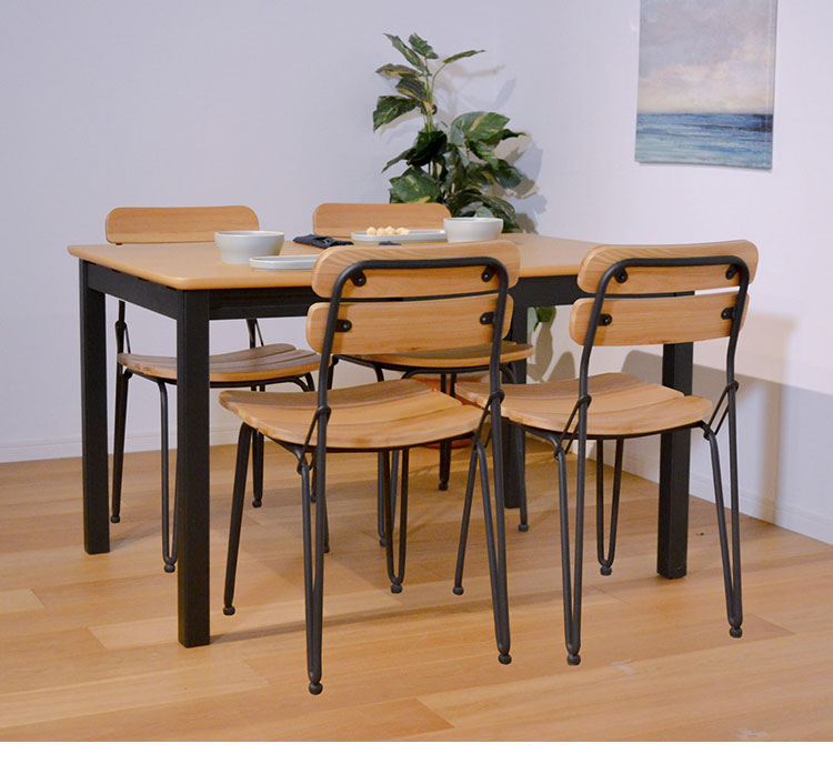 アイアンと天然木を組み合わせたスタイリッシュなチェアです。