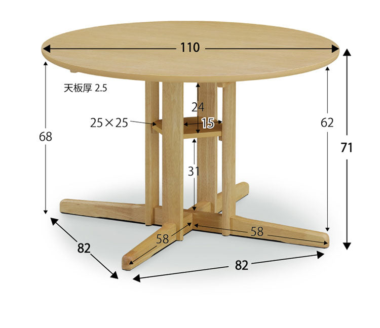 丸テーブル 110cm ダイニングテーブル 円形 カフェテーブル 北欧 天然木 オーク 円卓 センター脚 棚付き リビング ダイニング ワンルーム おしゃれ(代引不可)