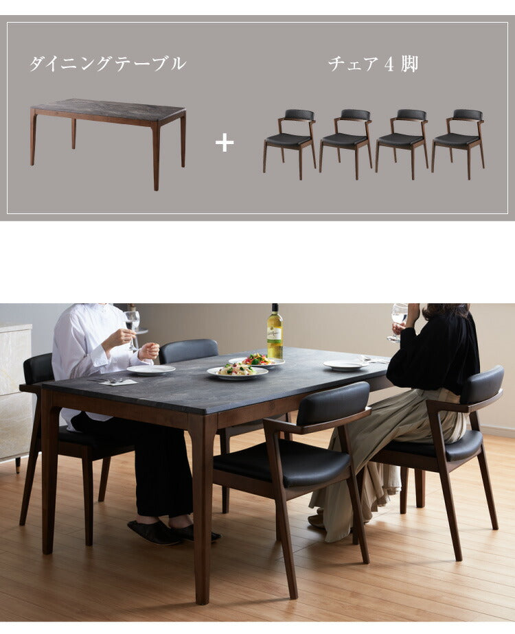 ダイニングセット 4人掛け 大理石調 5点セット 幅160 チェア ダイニングテーブルセット モダン 耐熱 大理石調ダイニングテーブル ハーフアームチェア(代引不可)