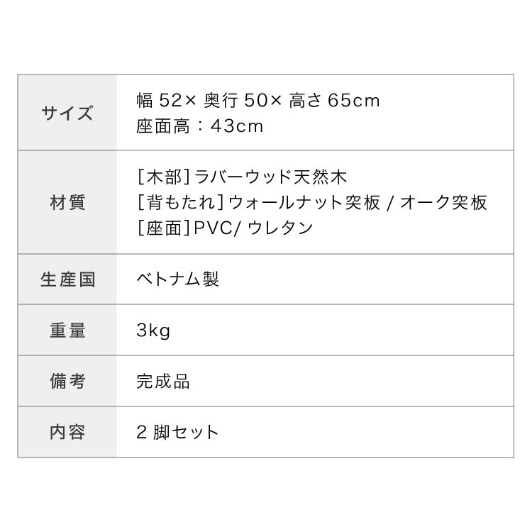 幅52×奥行50×高さ65(座面高さ43)cm