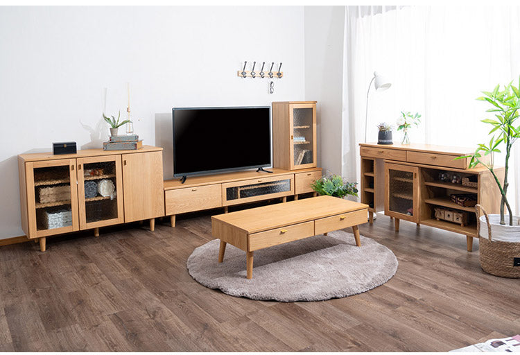 テレビボード 幅150cm 天然木 木製 テレビ台 ガラス扉 引き出し付き リビング DVD収納 レコーダー AV機器収納 TV台 TVボード 一人暮らし 新生活 おしゃれ かわいい(代引不可)