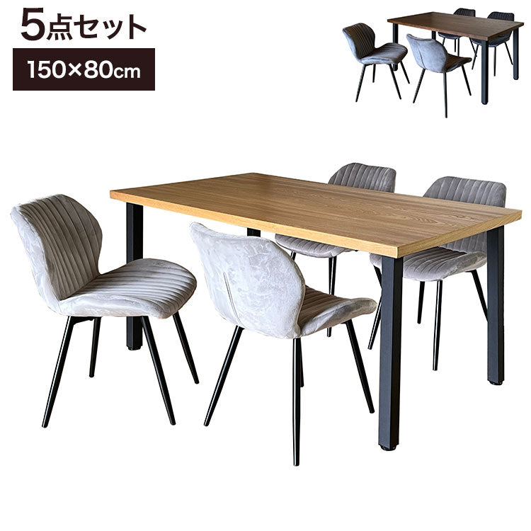 ダイニングセット 4人掛け テーブル 幅150cm チェア4脚 天然木 アイアン脚 ファブリック おしゃれ 木目 リビング ダイニング ダイニングテーブル 食卓 テーブル ダイニングチェア 椅子 チェア(代引不可)