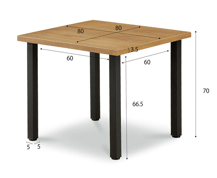 ダイニングテーブル 幅80cm テーブル 正方形 天然木 アイアン脚 おしゃれ 木目 リビング ダイニング 食卓 机 4本脚 2人用 2人掛け リビングテーブル カフェテーブル 奥行80cm 高さ70cm 単品 鉄脚(代引不可)