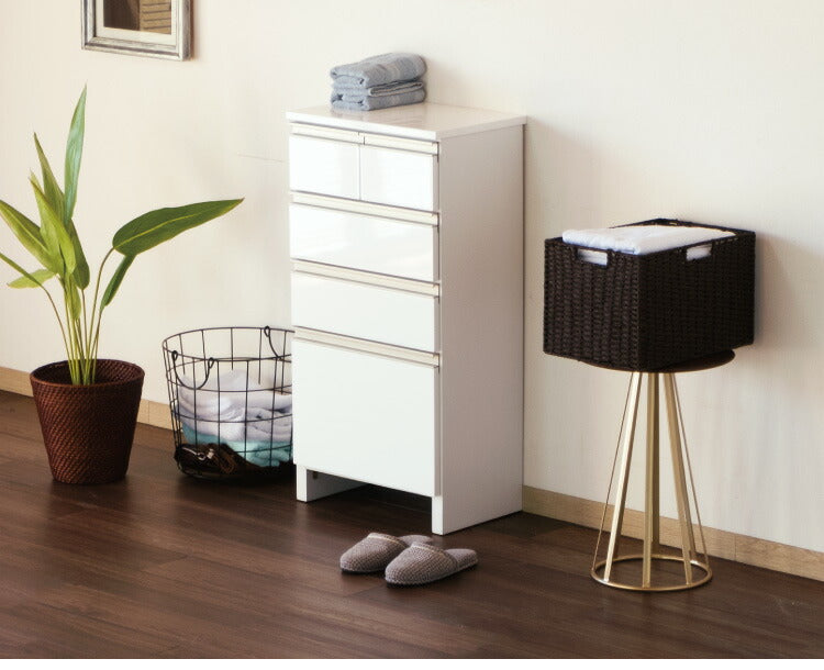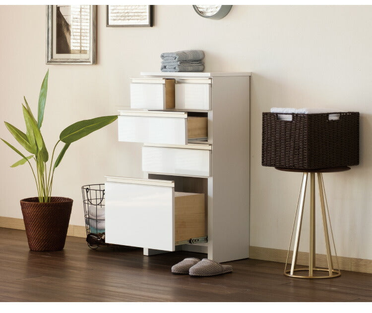一生紀 サニタリーチェスト 完成品 4段 幅45 奥行30 高さ90 LILIA ランドリーチェスト 鏡面 ホワイト 白 スリム ランドリーラック ISSEIKI おしゃれ(代引不可)