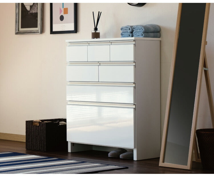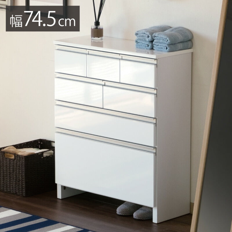 一生紀 サニタリーチェスト 完成品 4段 幅75 奥行30 高さ90 LILIA ランドリーチェスト 鏡面 ホワイト 白 ワイド ランドリーラック ISSEIKI おしゃれ(代引不可)