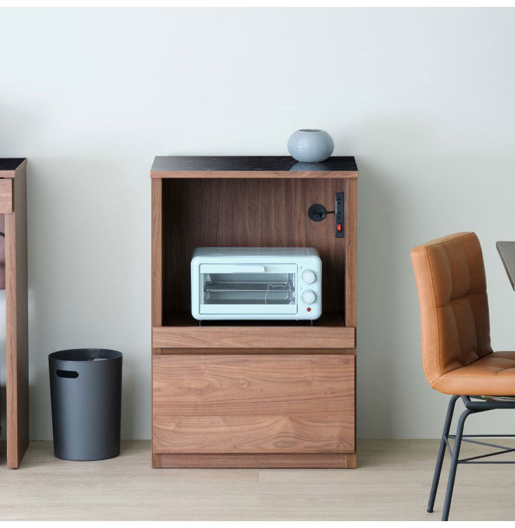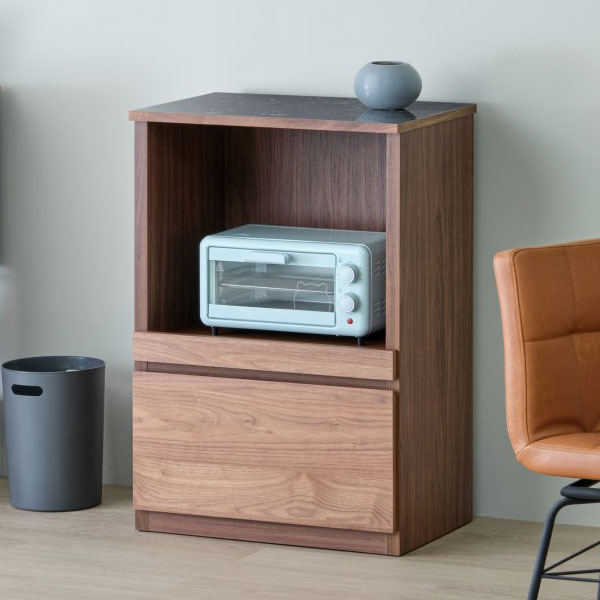 一生紀 AULIA レンジ台 完成品 組み合わせキッチン収納 メラミン 大理石柄 ウォルナット オイル仕上げ フルスライドレール スライド棚 レンジラック コンパクト 北欧 モダン ISSEIKI(代引不可)