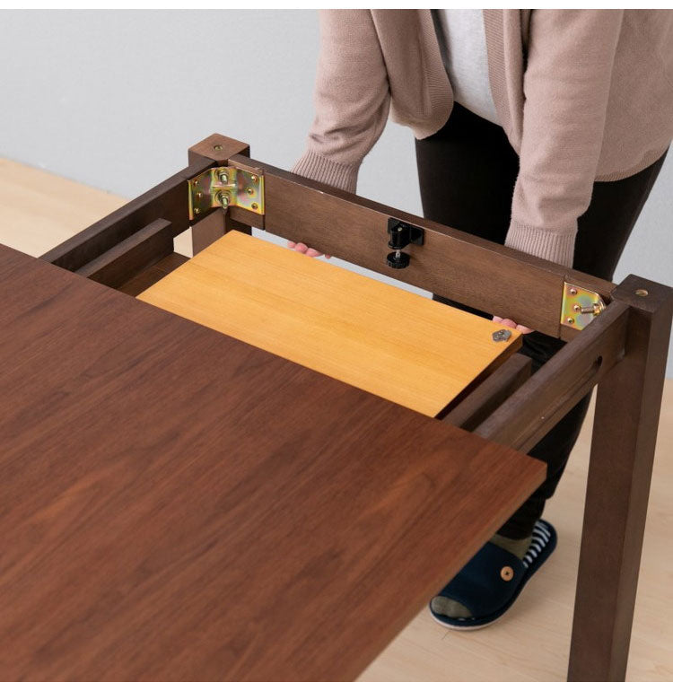 脚ごと簡単伸張。引き出した中に伸張用天板をセット。