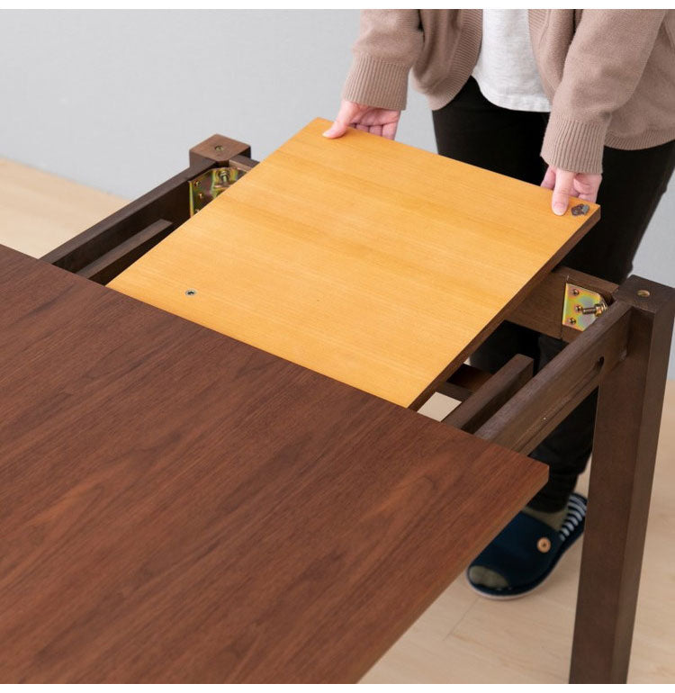 伸?部分は、天板と木目が繋がるように設計されており、更に中に収納することが出来るため、小さいサイズで使用しているときにも、見た目の違和感もありません。