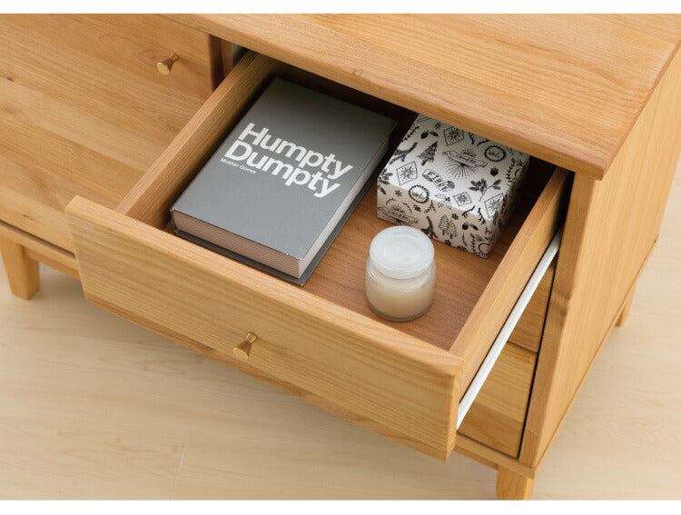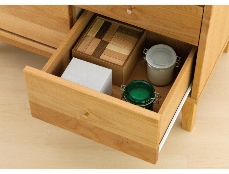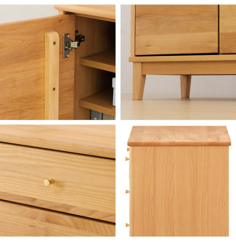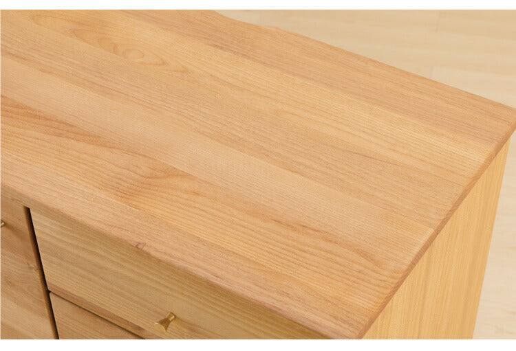 天板、前板、脚部にアルダー無垢材をふんだんに使用。