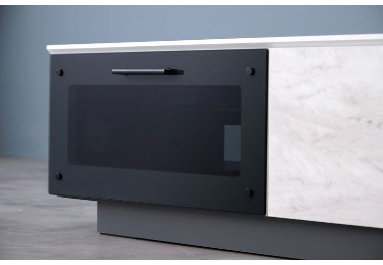 ブラックガラスを使用することでスタイリッシュ感を演出し、中は見えづらいためお部屋の雰囲気を崩しません。
