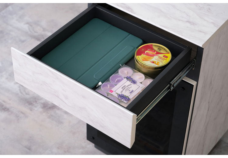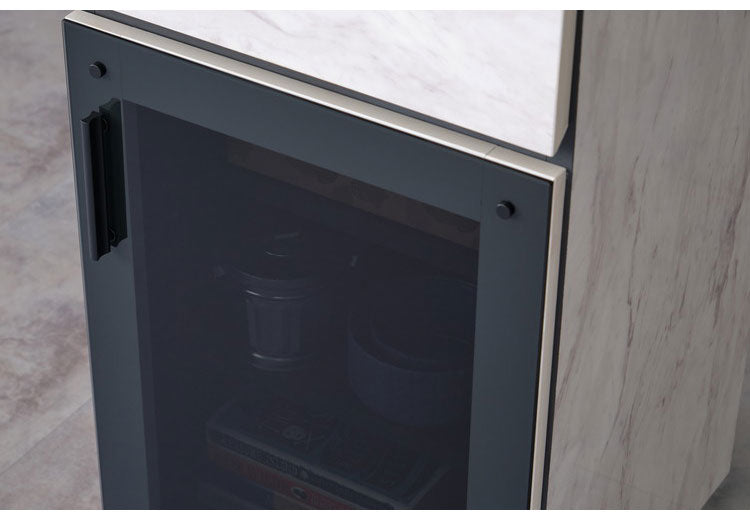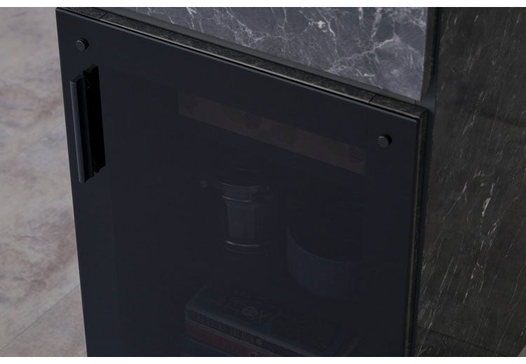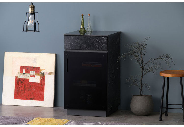 前板にブラックガラスを使用することでスタイリッシュ感を演出し、中は見えづらいためお部屋の雰囲気を崩しません。