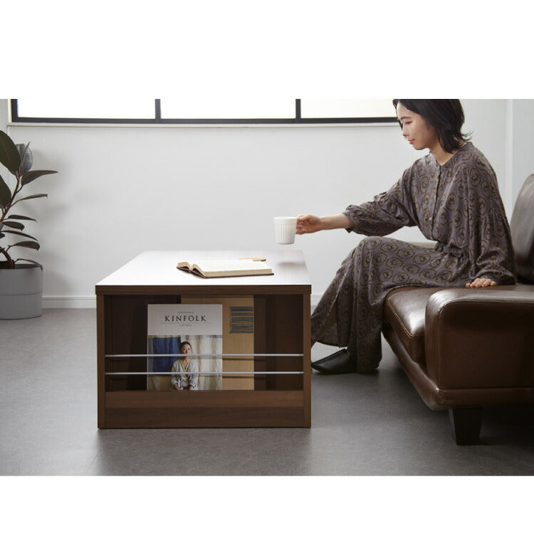 センターテーブル、ローテーブル、収納、引き出し、マガジンラック、本棚、キャスター付き、ロボット掃除機対応、セメントグレー、コンクリート調、セラミック調、大理石調
