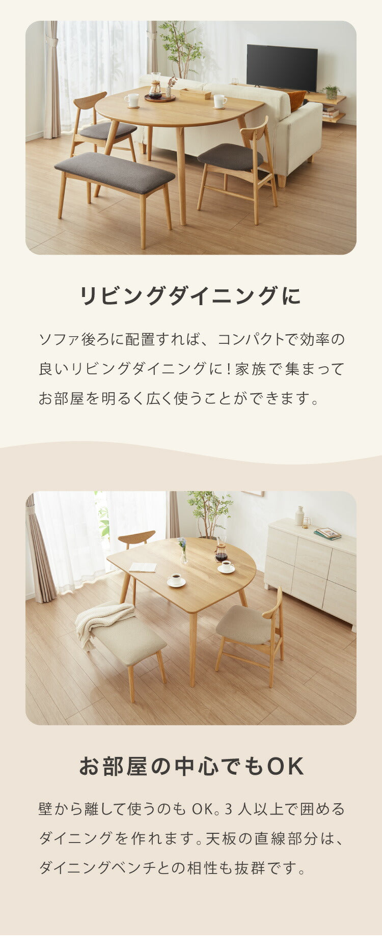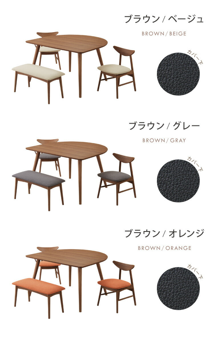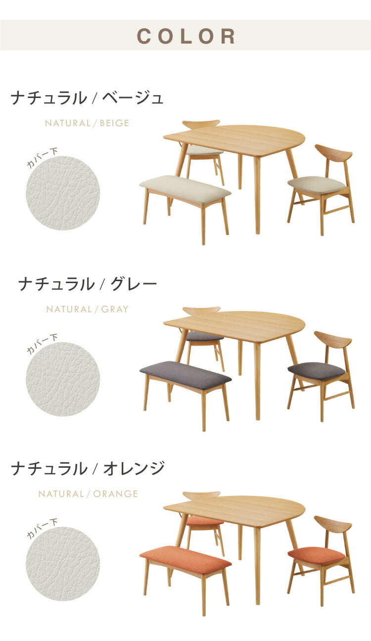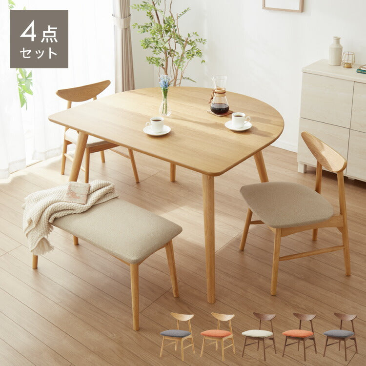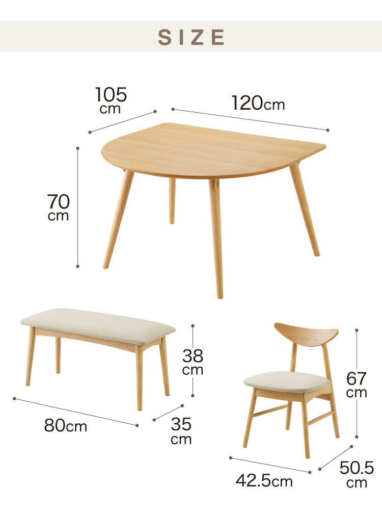 省スペース 半円ダイニング 4点セット 幅120 テーブル+チェア2脚+ベンチ 壁付け すっきり収納 円形 2人用 3人用 食卓 カウンター 壁付けテーブル 天然木 木製 おしゃれ(代引不可)