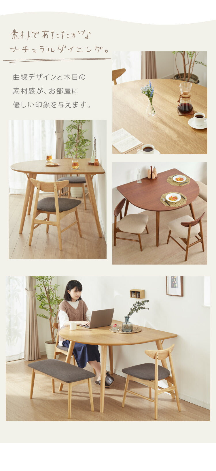 半円型のダイニングテーブル。オーク、ウォルナットの突板を天板に使用し高級感があります。