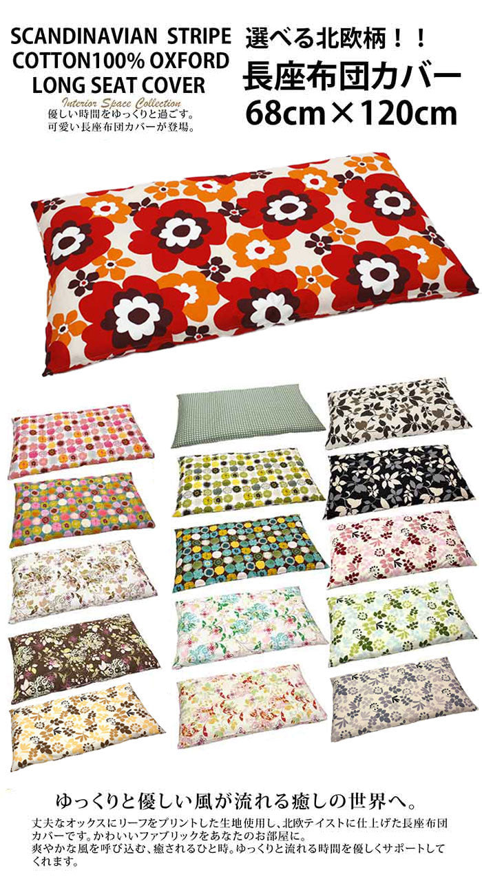 日本製 大判長座布団カバー 北欧柄シリーズ ごろ寝カバー 長座布団カバー 約68×120cm 北欧 ドット柄 フラワー柄 長座布団 カラー 座布団 カバー クッション 角 シート おしゃれ かわいい シンプル(代引不可)【メール便配送】